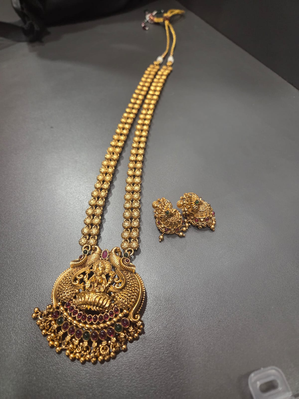 Antique Gold Lakshmi Temple Necklace Set AN35
